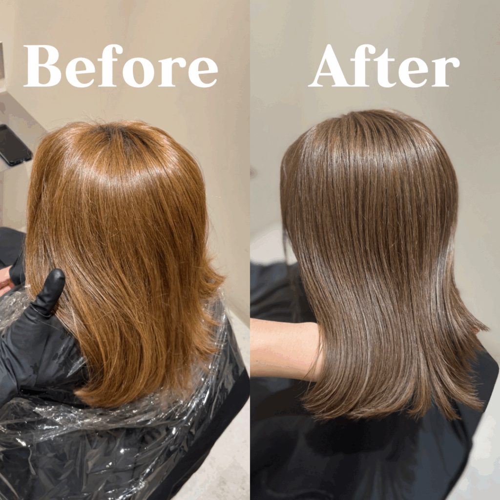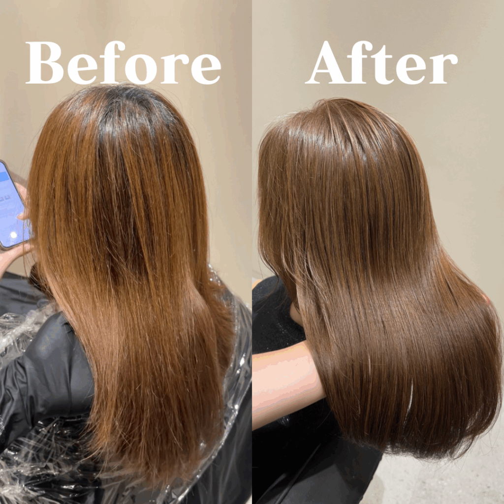 黄色味を抑え、暖かみのある艶髪カラー