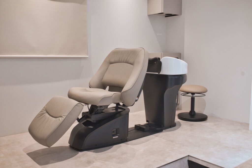 最高級のフルフラットのシャンプー台を